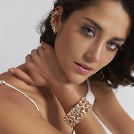 BRACELETE COM CRISTAIS TRANSPARENTES OVAIS BANHADO A OURO